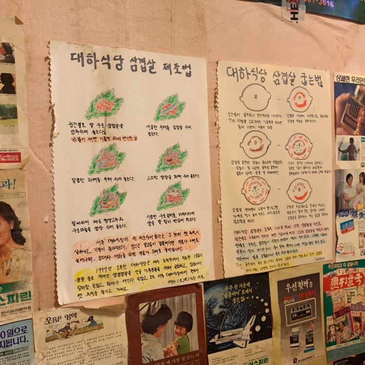 삼겹살 굽는 방법과 맛있게 먹는 방법도 벽에 붙어 있다.